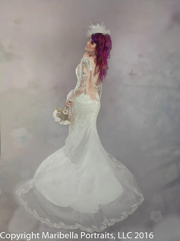 When putting together this concept I found the perfect model to play the role of the beautiful innocent bride who would lure her prey, an un suspecting male who would fall head over heels for her alluring beauty.